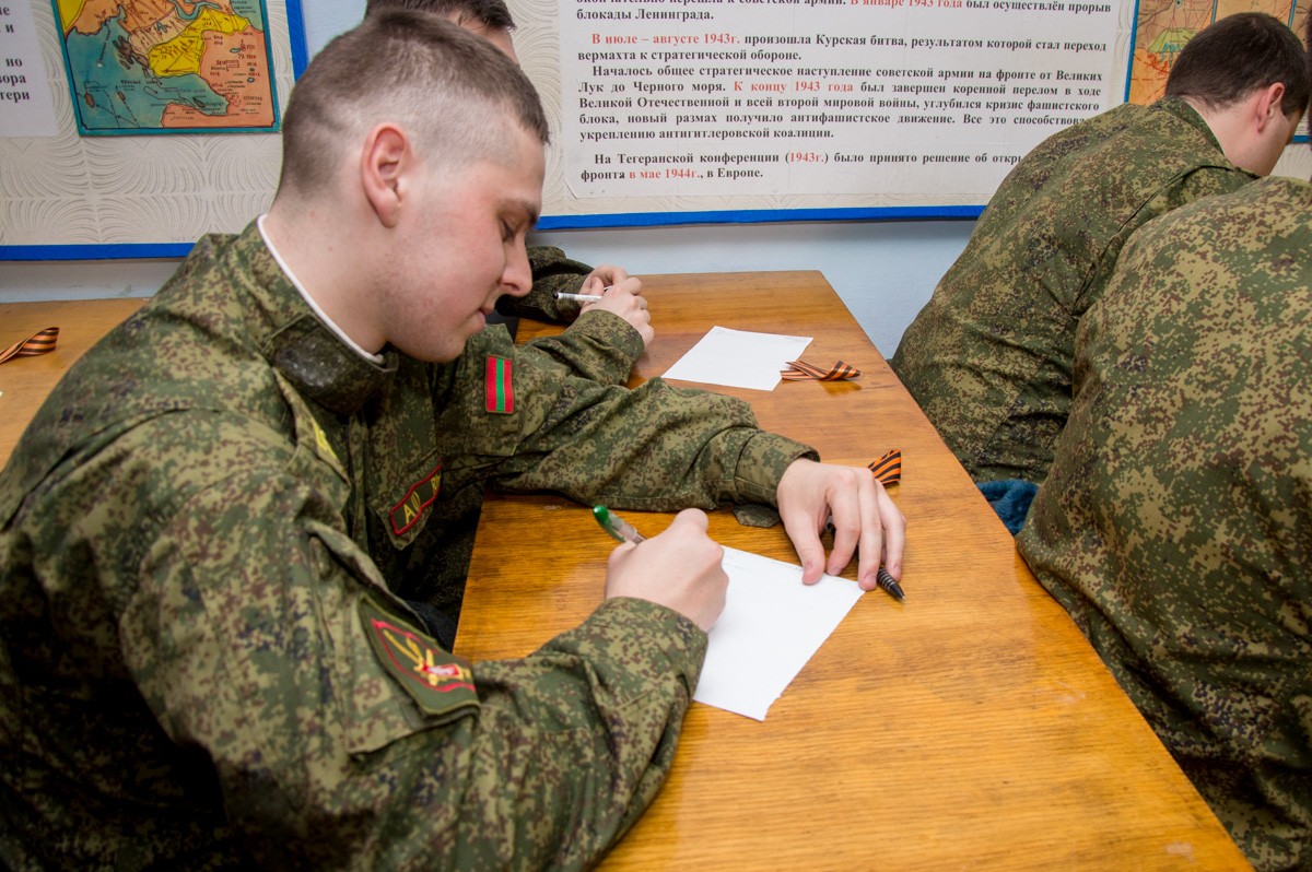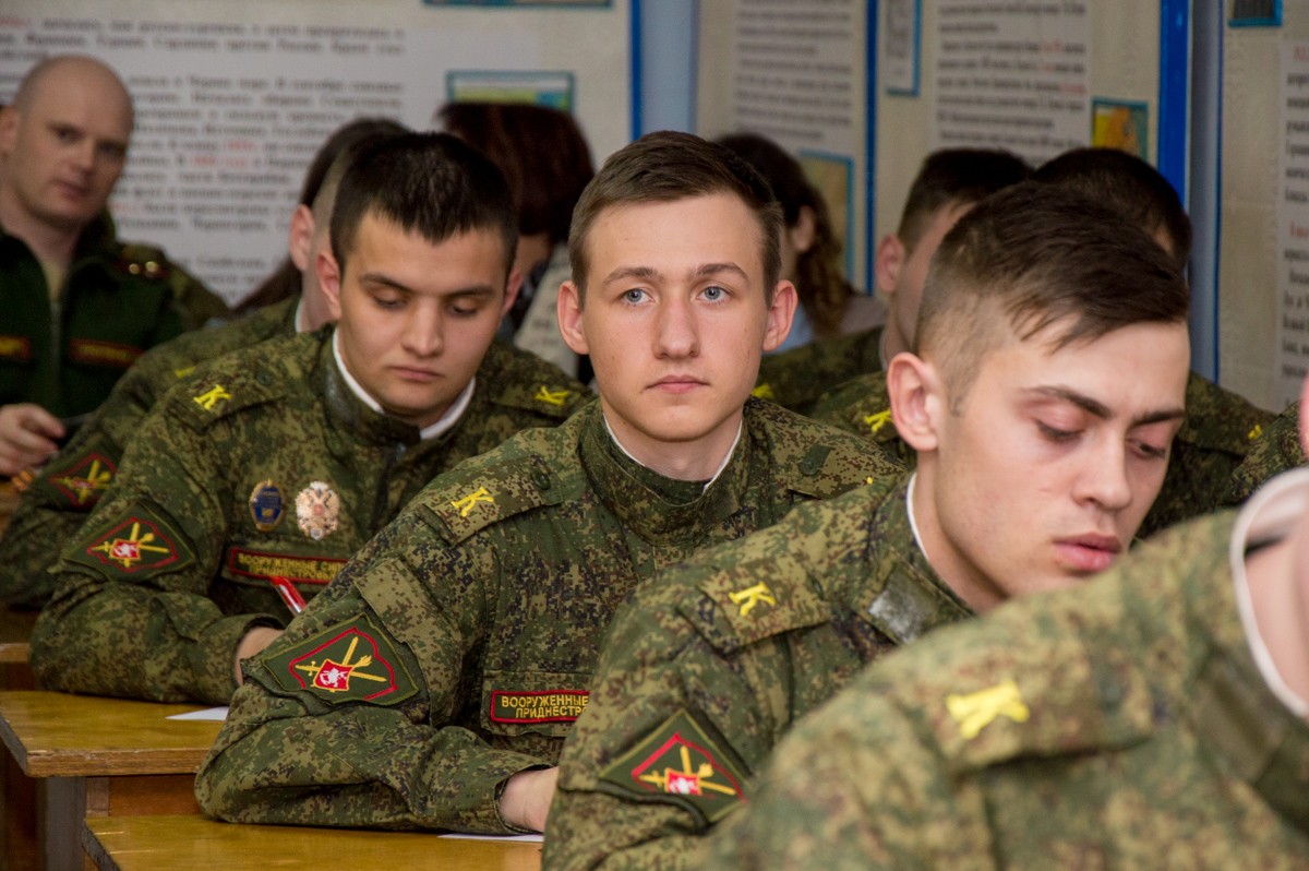 В стенах Военного института Министерства обороны ПМР была организована встреча общественных активистов и курсантов учебного заведения. Открылось мероприятие с вручения георгиевских лент, затем в ходе беседы участниками обсуждались главные принципы патриотического воспитания. Курсанты также прошли тест, определяющий уровень патриотизма.