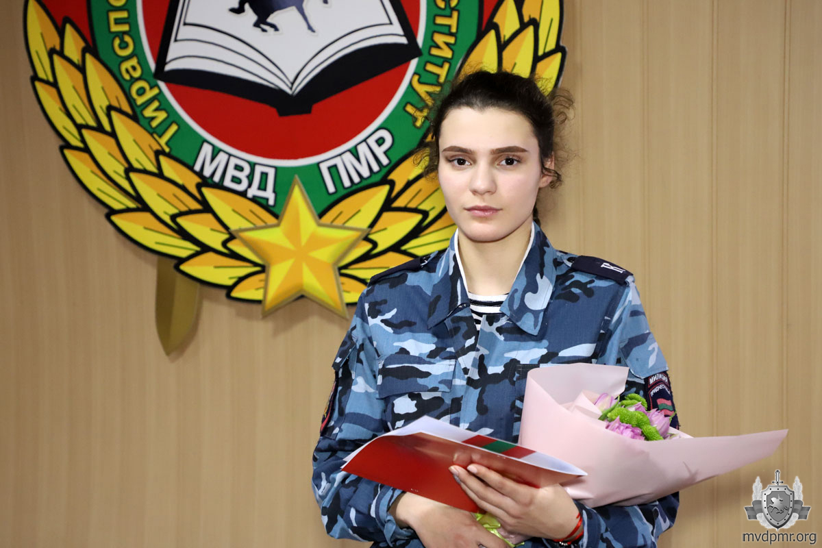 Тирасполь, 28 декабря. /Новости Приднестровья/. Министр внутренних дел ПМР Руслан Мова вручил благодарственное письмо и денежную премию курсантке первого курса Тираспольского юридического института Виктории Пармакли за проявленную смелость, настойчивость, решительность в борьбе с преступностью и активное участие в раскрытии тяжкого преступления.