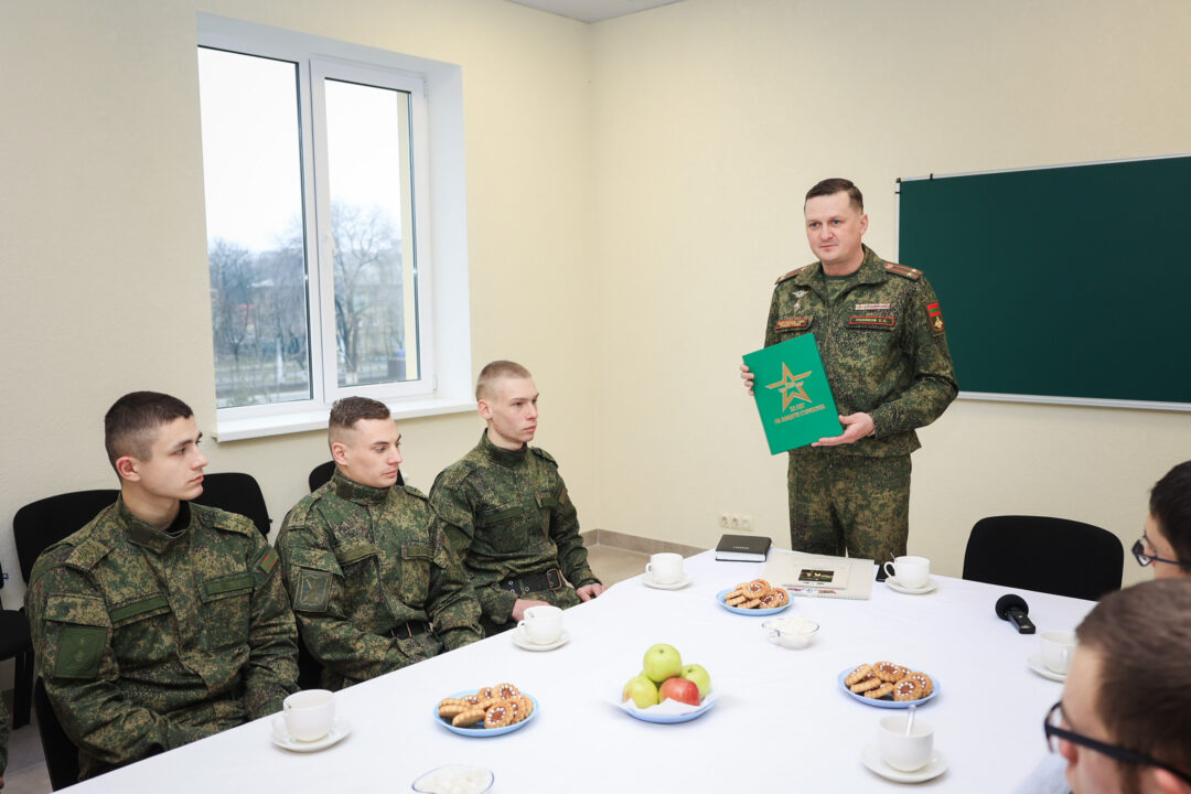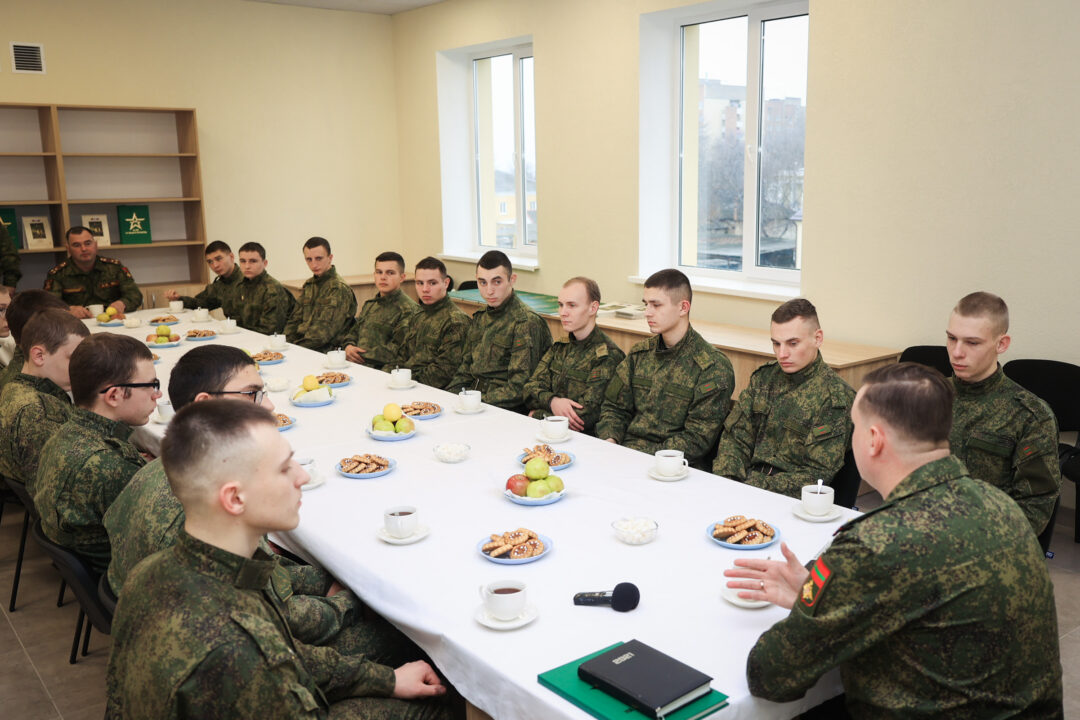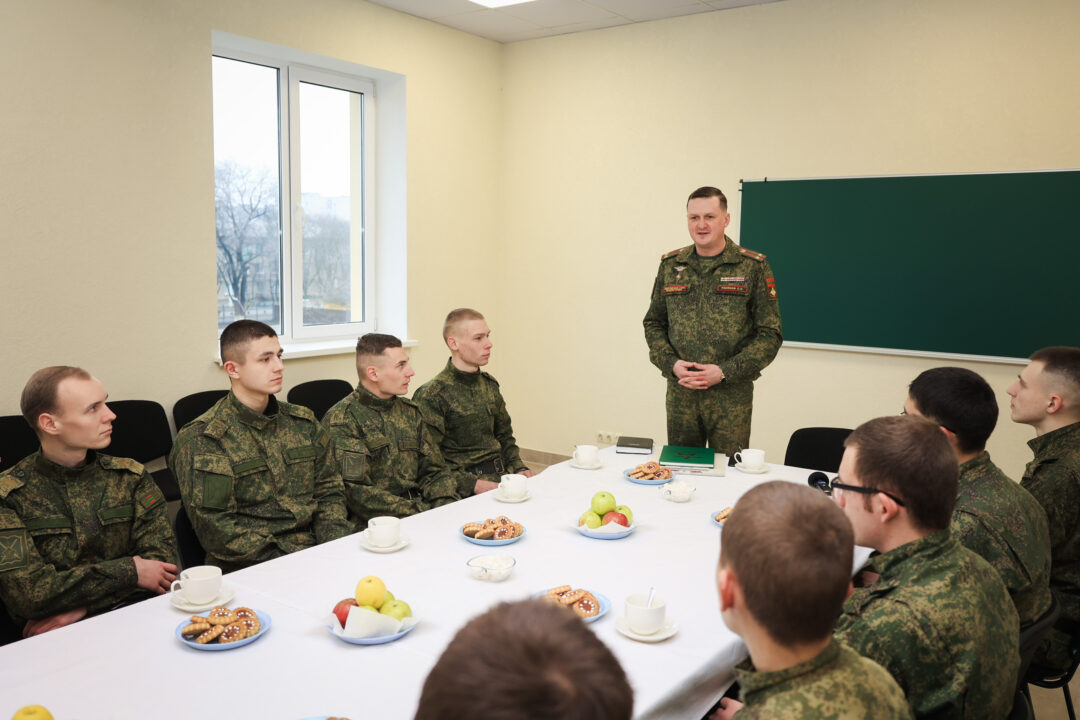Встреча с курсантами прошла в новом здании Военного института. Говорили о занятиях спортом, достижениях в учебе и курсантских планах на будущее. Не обошли стороной и злободневную тему – энергокризис в республике.