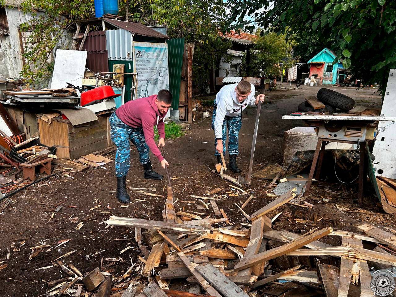 Молодые люди помогли по хозяйству: накололи дров, благоустроили территорию
