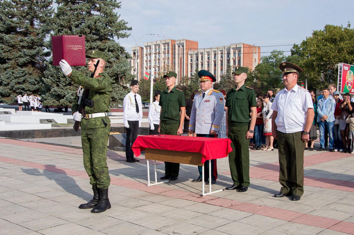 Тирасполь, 6 сентября. /Новости Приднестровья/. Курсанты Военного института Минобороны присягнули на верность Родине. Торжественная церемония по традиции прошла в День образования приднестровских Вооружённых сил на столичном Мемориале Славы.