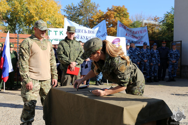Представительница МВД Светлана Ивлева показала лучший результат в разборке-сборке автомата Калашникова: она справилась с заданием меньше чем за 10 секунд. Ещё одна сотрудница ведомства Светлана Юларжи оказалась лучшей в сборке АК-74.
