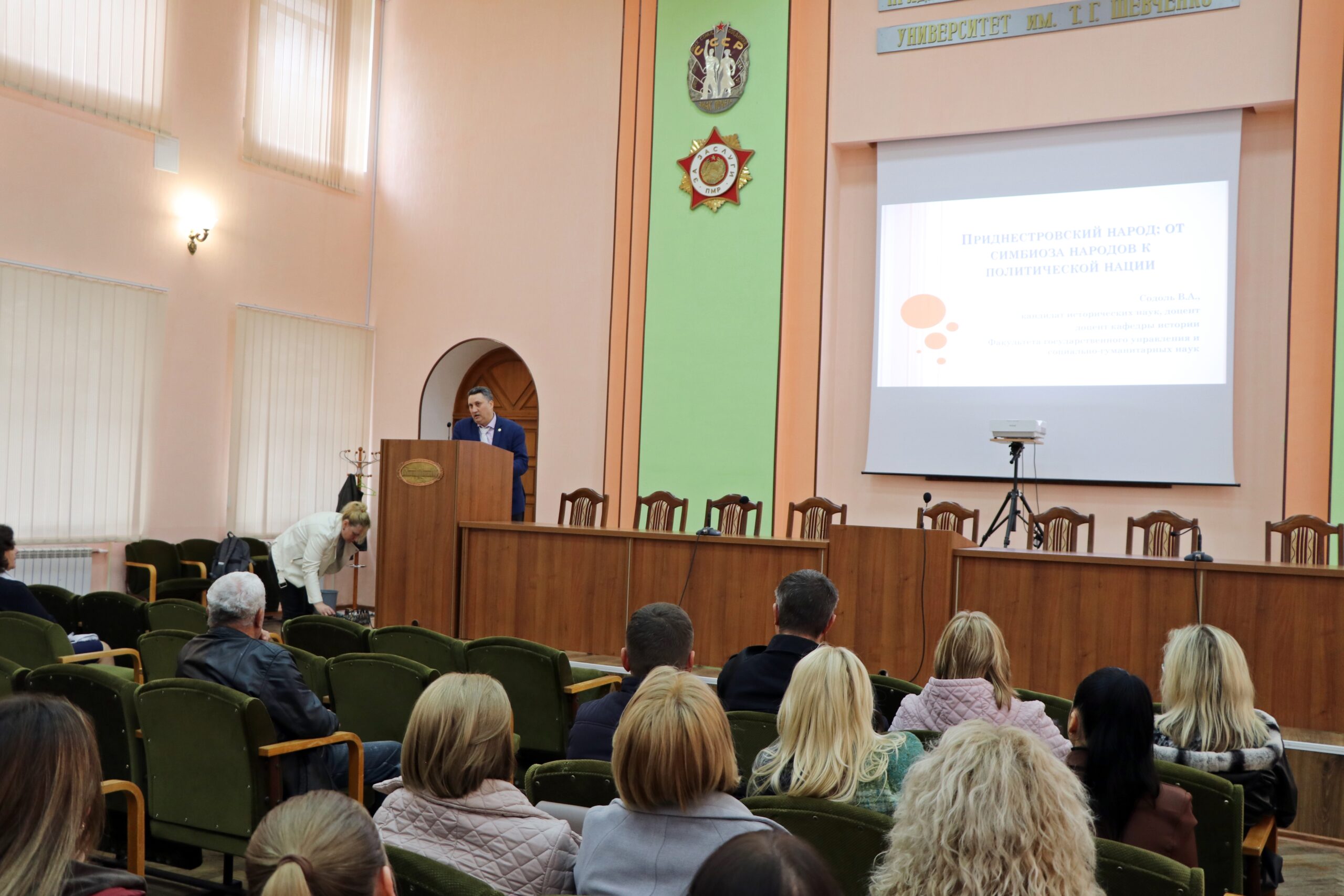 В ходе лекции Вячеслав Содоль осветил ключевые вехи этнической истории Приднестровья — от древнейших времён до современности. Выступление сопровождалось мультимедийной презентацией, включающей архивные материалы, даты и исторические события.