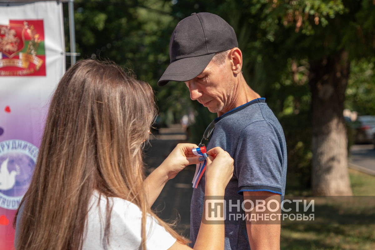 Тирасполь, 22 августа. /Новости Приднестровья/. Девушки и юноши из общественных организаций Приднестровья подарили жителям Тирасполя нагрудные ленты в виде государственного флага России. Так молодежь решила поздравить жителей приднестровской столицы с Днём российского флага. Тираспольчане охотно принимали российские триколоры, водители останавливали машины, чтобы получить ленту, в восторге были дети.