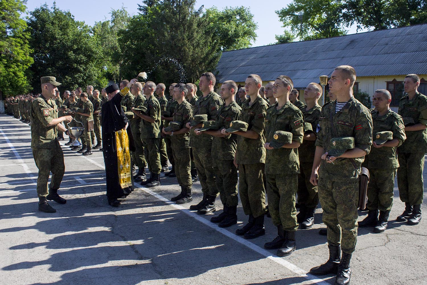 Как сообщает пресс-служба Министерства обороны ПМР, на плацу одной из воинских частей состоялся митинг, посвященный началу летнего периода обучения. По традиции мероприятие началось с построения личного состава и выноса боевого знамени. Войсковой священник отец Владимир благословил военнослужащих на ратную службу и окропил святой водой.