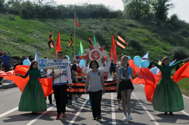 Открыло культурно-спортивную программу праздничного дня шествие команд-участниц. Колонны образовательных организаций в этом году объединили общей тематикой – 75-й годовщиной освобождения Слободзейского района от немецко-фашистских захватчиков.