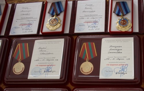 Медалями «За трудовую доблесть», «За отличие в труде», «За отличную службу по охране общественного порядка», «За безупречную службу» были вручены лучшим из лучших в своих профессиях – сотрудникам правоохранительных и таможенных органов ПМР, участникам боевых действий, учёным, военнослужащим, работникам различных государственных органов.
