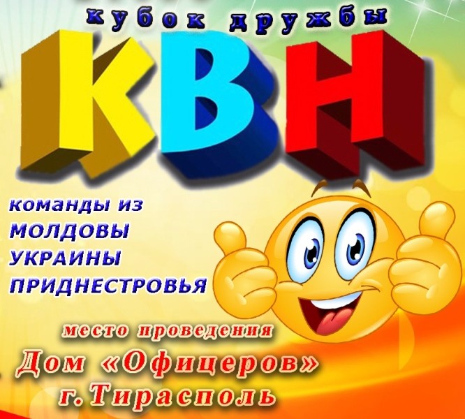 Тирасполь, 24 марта. /Новости Приднестровья/. 1 апреля в 17:00 в столичном Доме Офицеров пройдёт Международный открытый конкурс команд КВН. Юмористы из Приднестровья, Украины и Молдовы поборются за «Кубок дружбы».