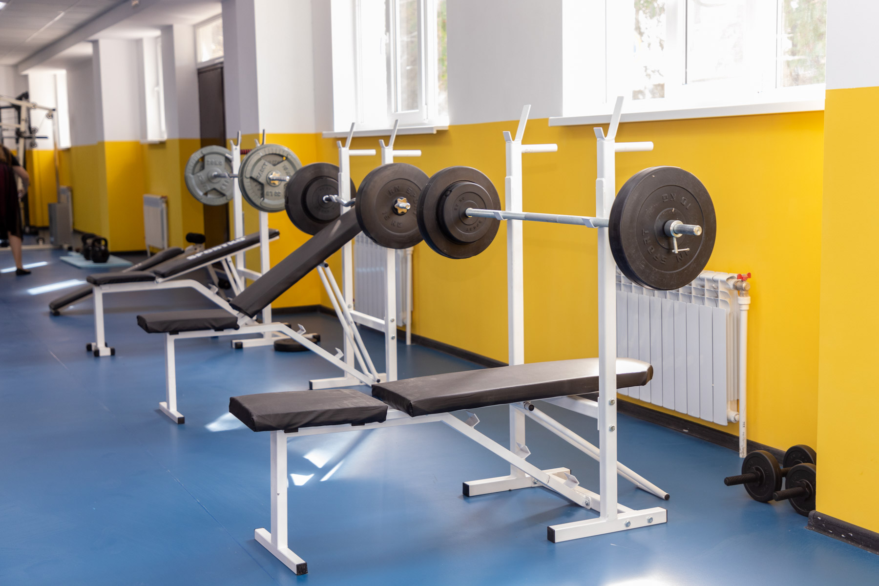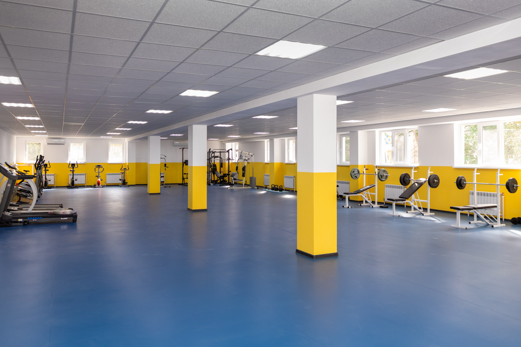 Все условия для реабилитации и физического развития спортсменов предусмотрены и в тренажёрном зале. Здесь есть беговые дорожки для марафонцев, велотренажёры, штанги, комплексные тренажёры и маты для занятий фитнесом.