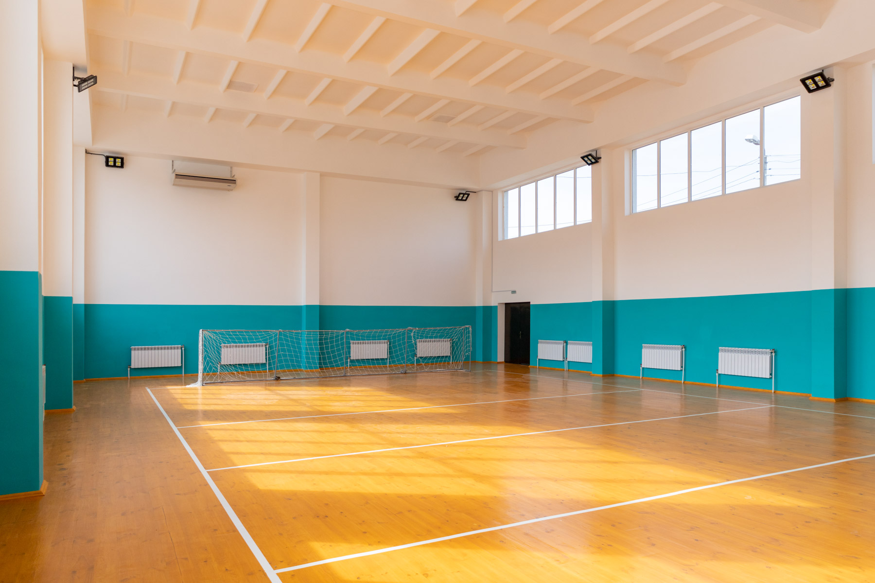 Специализированное напольное покрытие и в игровом зале: деревянный лакированный пол выполнен по европейским стандартам. Здесь можно заниматься волейболом, бадминтоном, баскетболом, футболом и другими видами спорта.