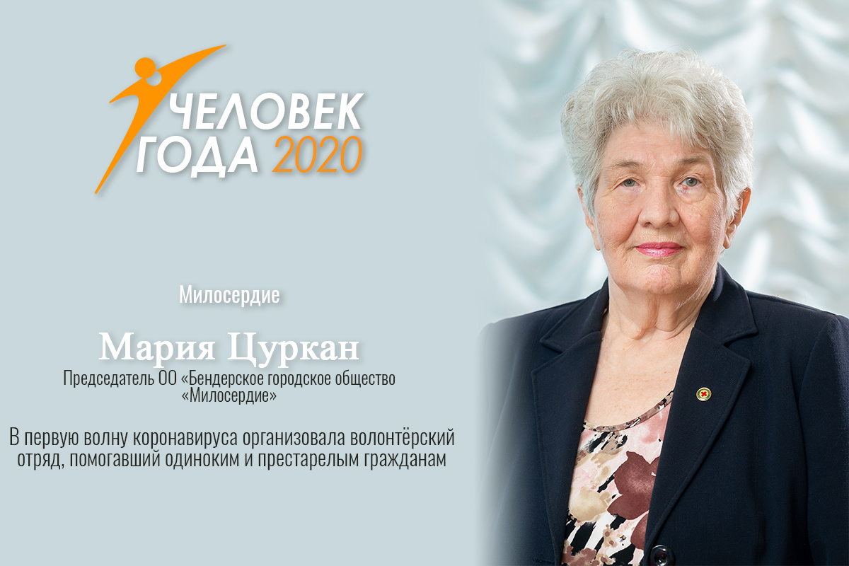 Тирасполь, 28 февраля. /Новости Приднестровья/. В самой доброй и человечной номинации «Милосердие» победила председатель ОО «Бендерское городское общество «Милосердие» Мария Цуркан. Данную организацию победительница конкурса «Человек года - 2020» возглавляет более 25 лет.