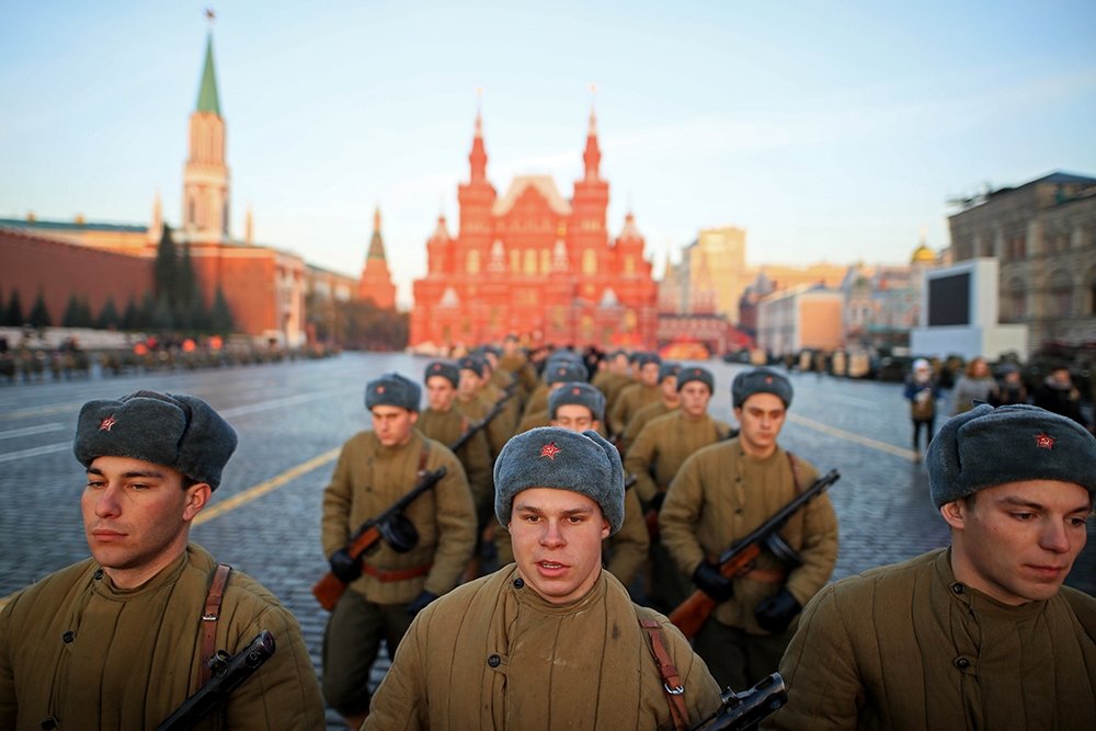 В Москве сегодня на Красной площади прошел марш в честь годовщины парада 7 ноября 1941 года, пишет газета «Аргументы недели».