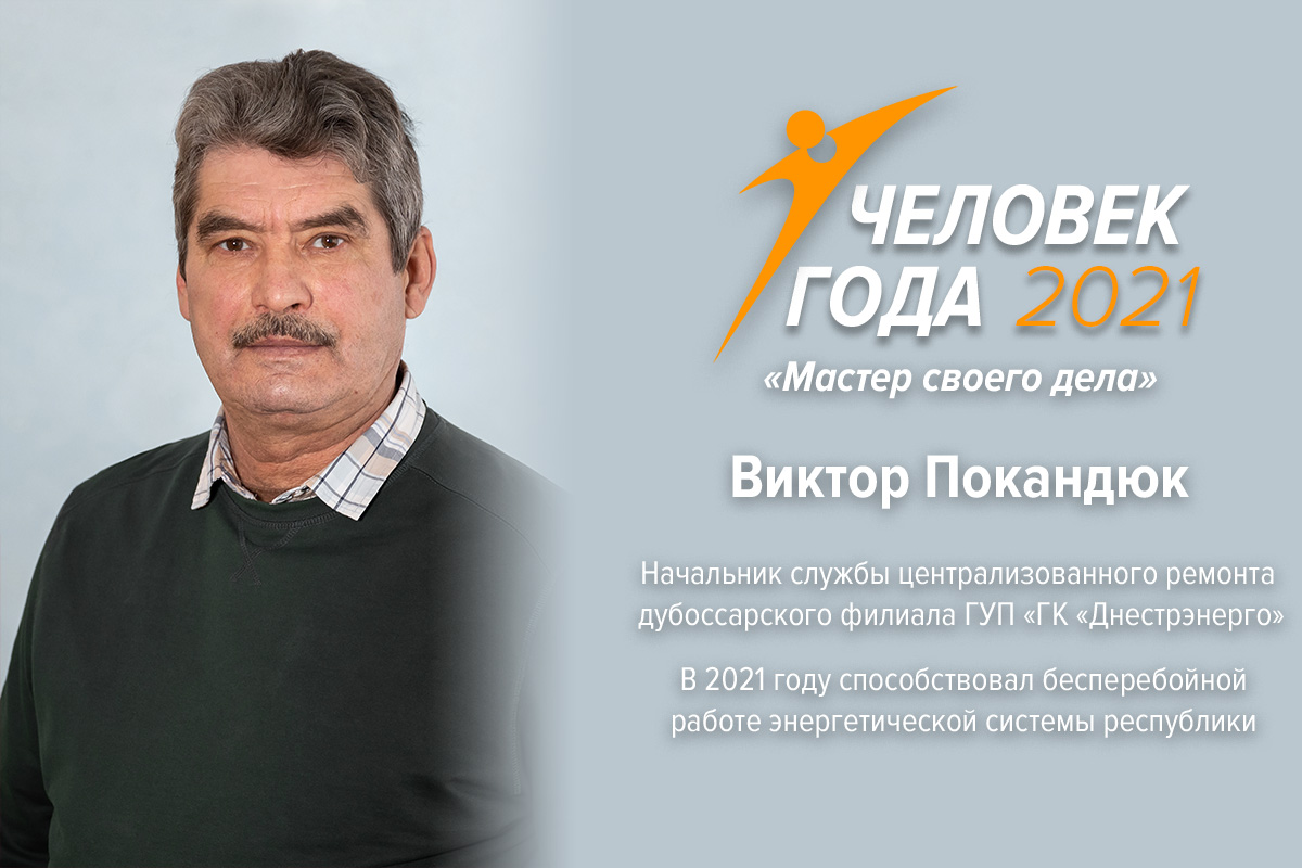 Тирасполь, 26 февраля. /Новости Приднестровья/. В номинации «Мастер своего дела» конкурса «Человек года – 2021» победил начальник службы централизованного ремонта дубоссарского филиала «Днестрэнерго» Виктор Покандюк.