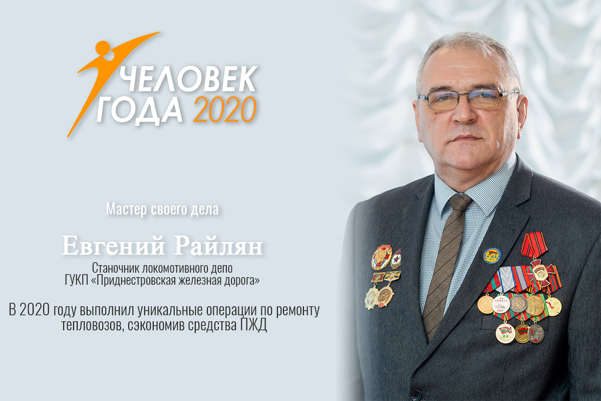 Тирасполь, 28 февраля. /Новости Приднестровья/. В номинации «Мастер своего дела» Государственного художественно-публицистического конкурса «Человек года – 2020» победил станочник широкого профиля 5 разряда локомотивного депо Южного отделения ГУКП «Приднестровская железная дорога» Евгений Райлян.