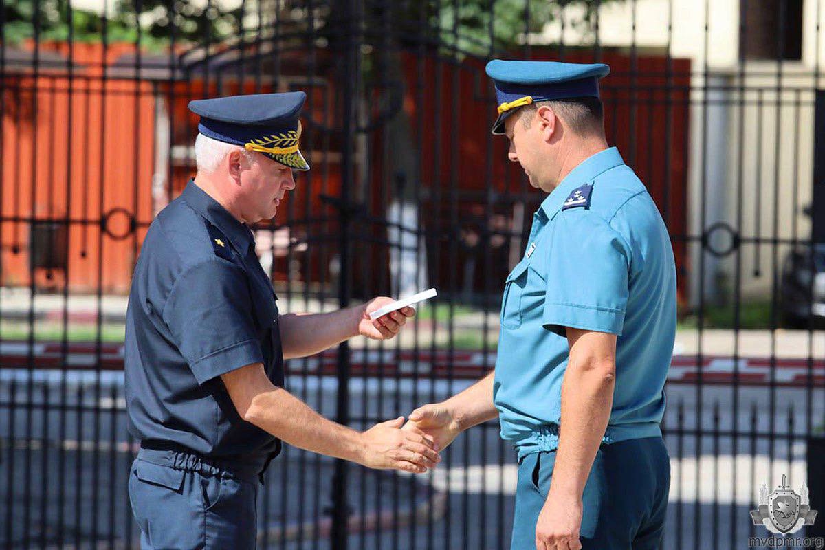 Тирасполь, 1 августа. /Новости Приднестровья/. Сегодня министр внутренних дел ПМР Виталий Нягу вручил медаль «За отвагу на пожаре» начальнику караула СВПЧ-8. Награды он удостоен за проявленный профессионализм, слаженные и оперативные действия при тушении пожара и за спасение человека, сообщается на сайте МВД ПМР.