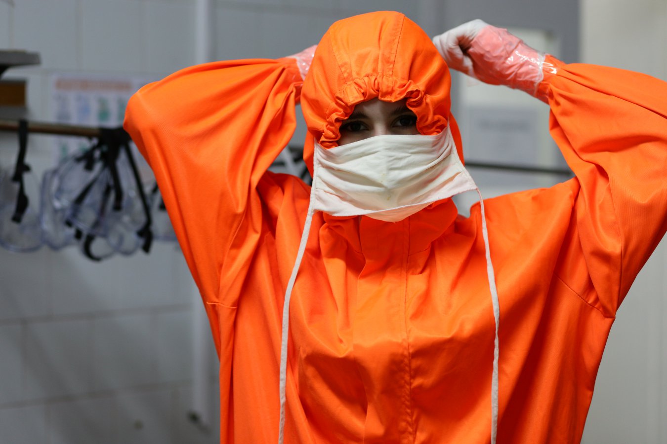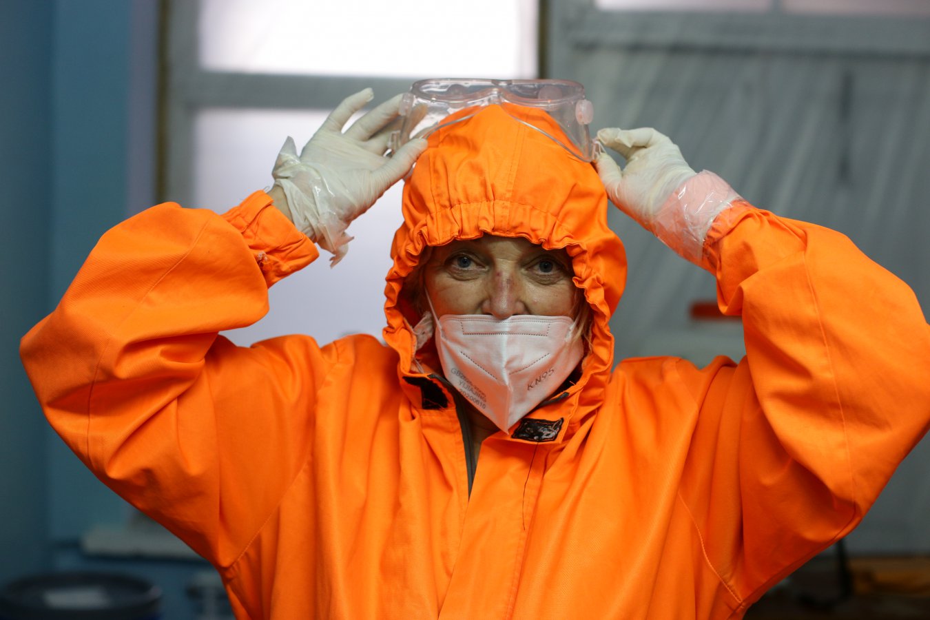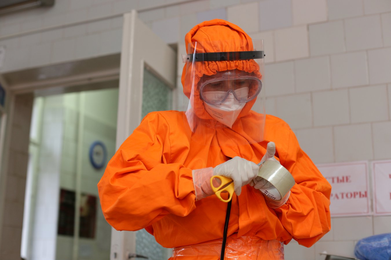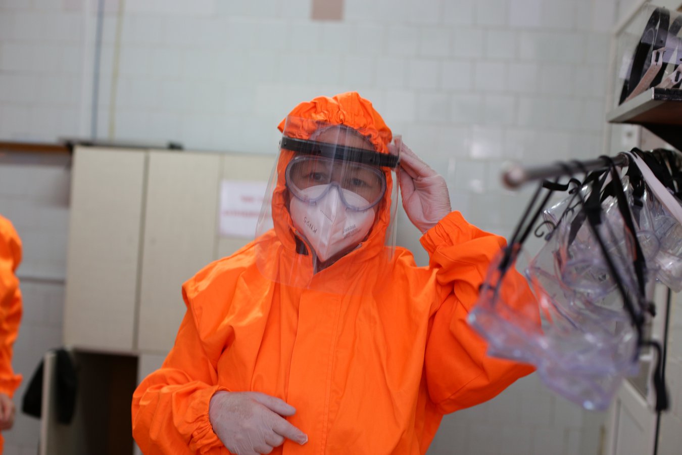 В COVID-госпитале работают 75 сотрудников. В красной зоне они проводят по 24 часа в сутки с перерывами на завтрак, обед и ужин.