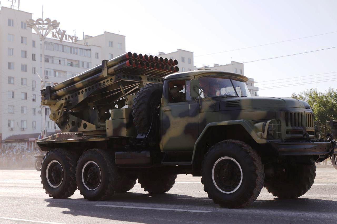 В завершении механизированной колонны техники и вооружения по площади проехали реактивные системы залпового огня. Это модернизированные и усовершенствованные преемники легендарных «Катюш» времен Великой Отечественной войны. В те годы системы залпового огня были основными ударными силами подвижных механизированных групп различных фронтов. Они внесли неоценимый вклад в Победу 1945 года.