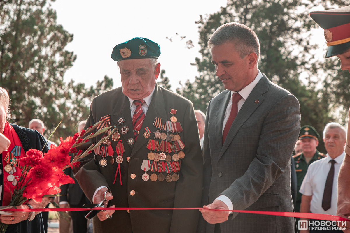 Обновленный Кицканский плацдарм сегодня торжественно открыли Президент ПМР Вадим Красносельский, участник Великой Отечественной войны Владимир Громов, член днестровской общественной организации «Ветераны войны, труда и вооруженных сил» Нина Кошинян, а также представители поколения будущих защитников Родины – суворовец, кадет и юнармеец.