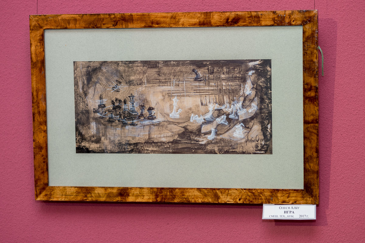 «Есть работы, которые мне очень близки по нутру, потому что я их очень сильно почувствовала. Это портрет Гоголя, серия графики "Маски" и некоторые работы из шахмат. Я люблю психологию, философию, поэтому часто провожу некоторые параллели», - рассказывает Олеся Албу.