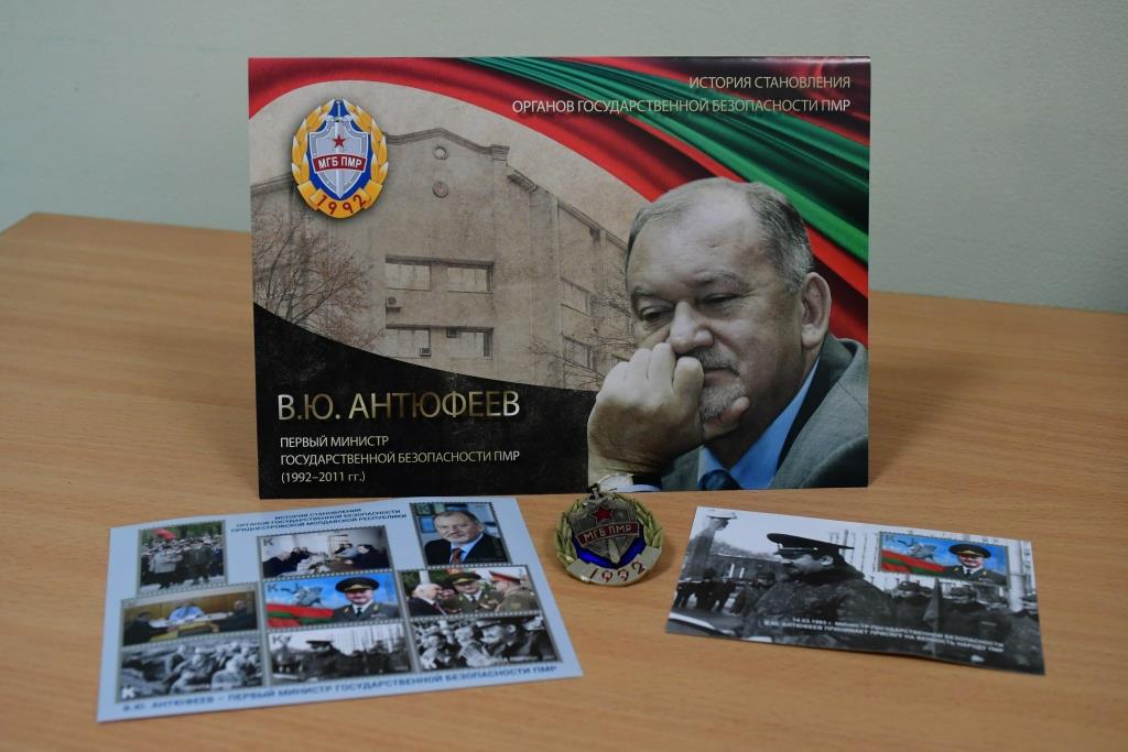 На почтовых марках и буклете отражены памятные моменты для приднестровской спецслужбы. На внешней стороне буклета символы МГБ – щит, меч и пятиконечная звезда. А также изображение государственного деятеля - первого руководителя ведомства - Владимира Антюфеева.