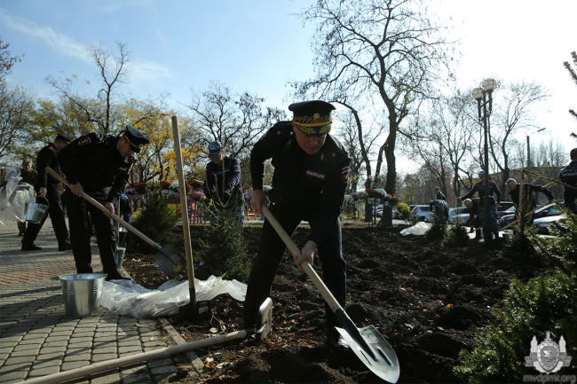 Сотрудники органов внутренних дел высадили около трех десятков елей и лип
