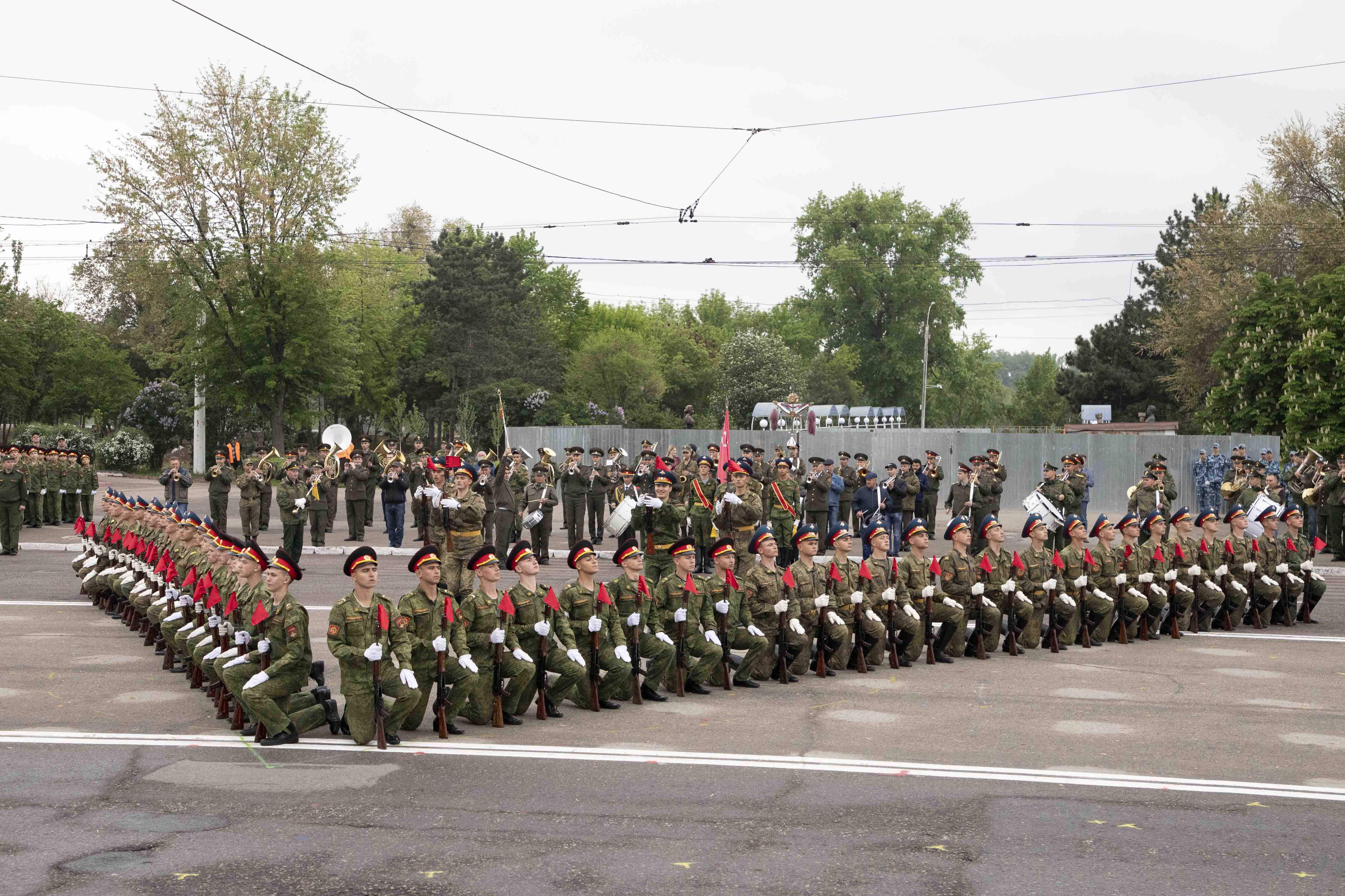 По центру Тирасполя под звуки военного оркестра Главного штаба Вооруженных сил прошли 10 парадных расчетов силовых структур. Среди них – военнослужащие Министерства обороны ПМР и Оперативной группы российских войск, министерств государственной безопасности и внутренних дел, курсанты, кадеты и суворовцы, сообщает пресс-служба Минобороны.