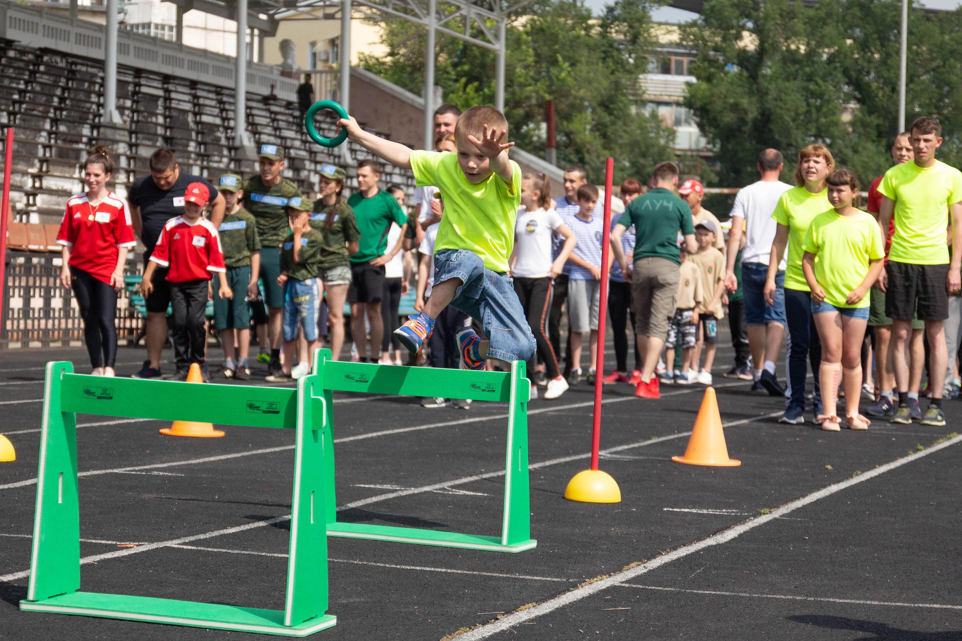 Пока мальчишки забивали голы, на соседнем поле Республиканского стадиона уже третий раз проходили «Веселые старты». В них участвовали семьи военнослужащих с детьми. В шести спортивных конкурсах участвовали 15 команд от воинских частей и учреждений Вооруженных сил. Участники преодолевали препятствия, соревновались в спортивных и военизированных эстафетах, метали гранаты и показывали высокие результаты в беге на время.