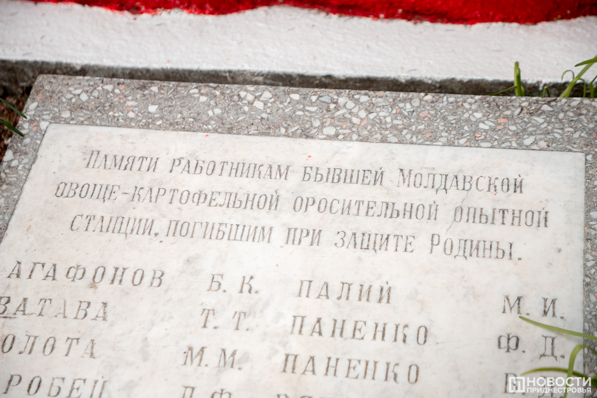 «20 молодых ребят, сотрудников и работников опытной овоще-картофельной станции, погибли в годы Великой Отечественной войны. Им было от 19 до 24 лет, многие были ещё не женаты. Их призвали сразу после освобождения Тирасполя, это были жители Тирасполя, сёл Суклея и Карагаш», – рассказала председатель Совета ветеранов войны, труда и Вооружённых сил ПНИИ с/х Евдокия Емельянова.