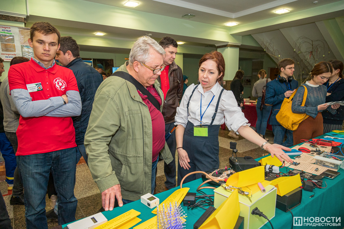 Тем временем в фойе Дворца открылись выставки и лаборатории техникумов, колледжей и вузов республики. Их представители рассказывали, чем интересно их учебное заведение, почему стоит учиться именно у них.
