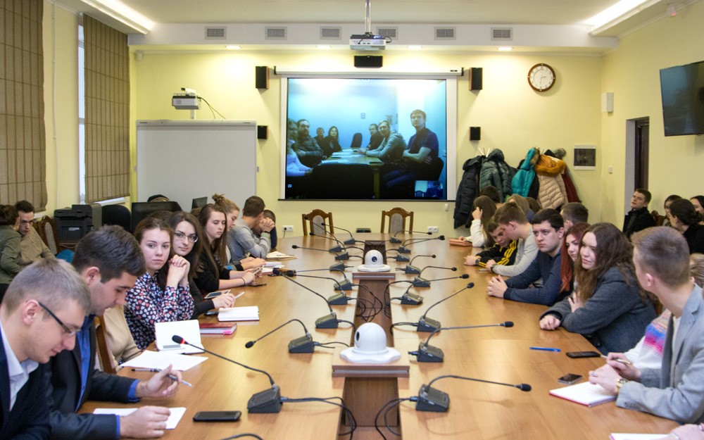 Тирасполь, 21 ноября. /ИА «Новости Приднестровья»/. Телемост с представителями молодежных организаций Пскова прошёл сегодня в ПГУ. Инициатором встречи выступил Совет молодых дипломатов ПМР.