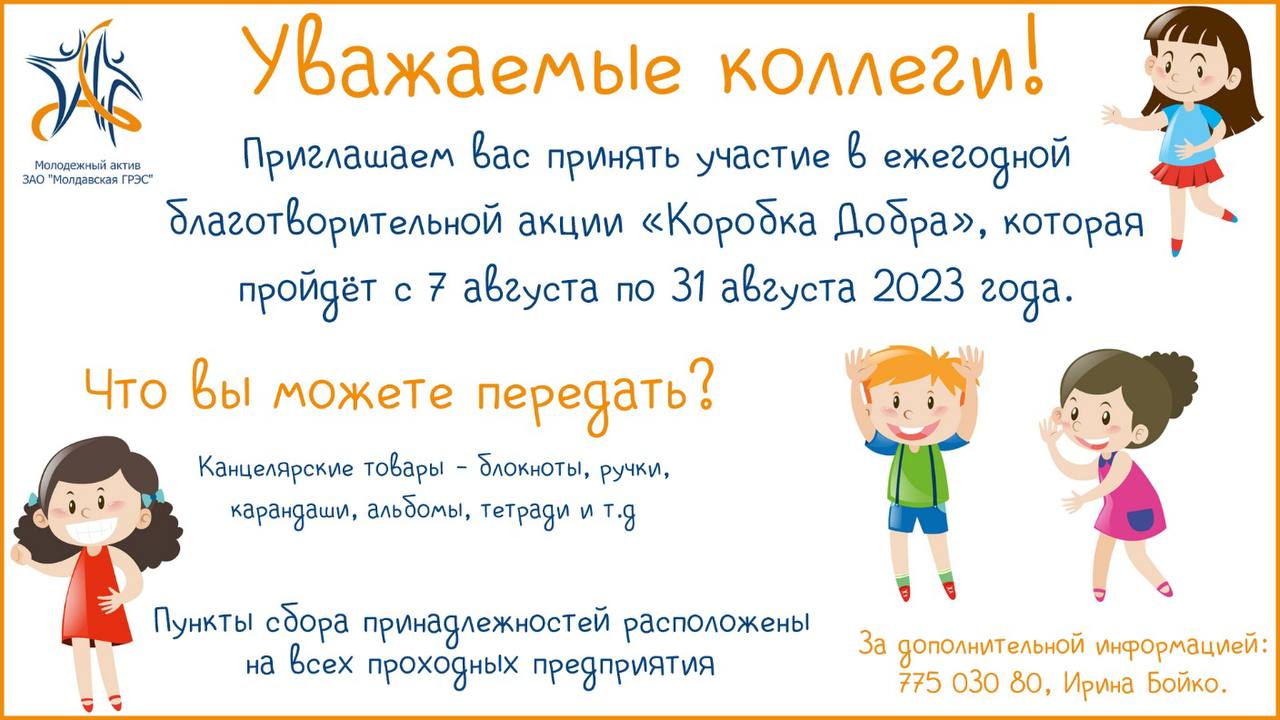 Молодежный актив Молдавской ГРЭС объявил благотворительную акцию «Коробка добра»