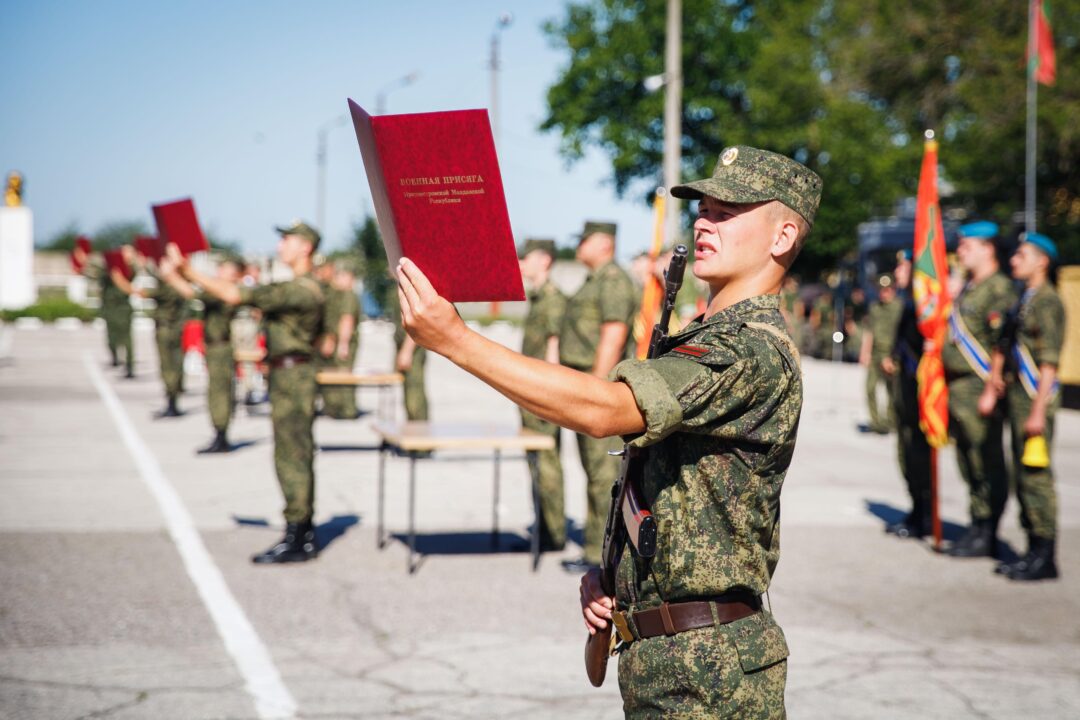 Тирасполь, 11 июля. /Новости Приднестровья/. Молодые военнослужащие Тираспольского гарнизона и студенты ПГУ им. Т. Г. Шевченко, обучающиеся в Военном институте, присягнули на верность Родине.