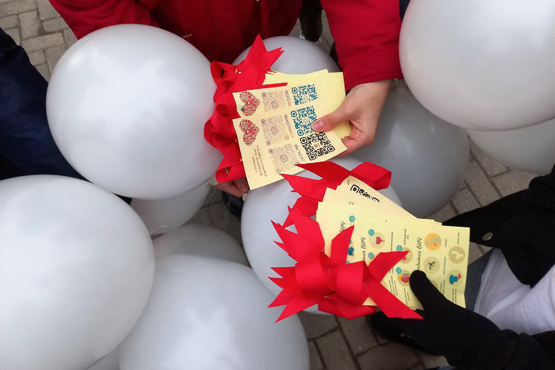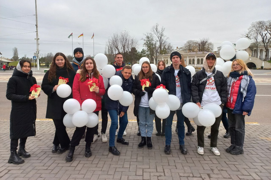 В центре Тирасполя молодёжи раздавали буклеты с красными лентами и белые шары