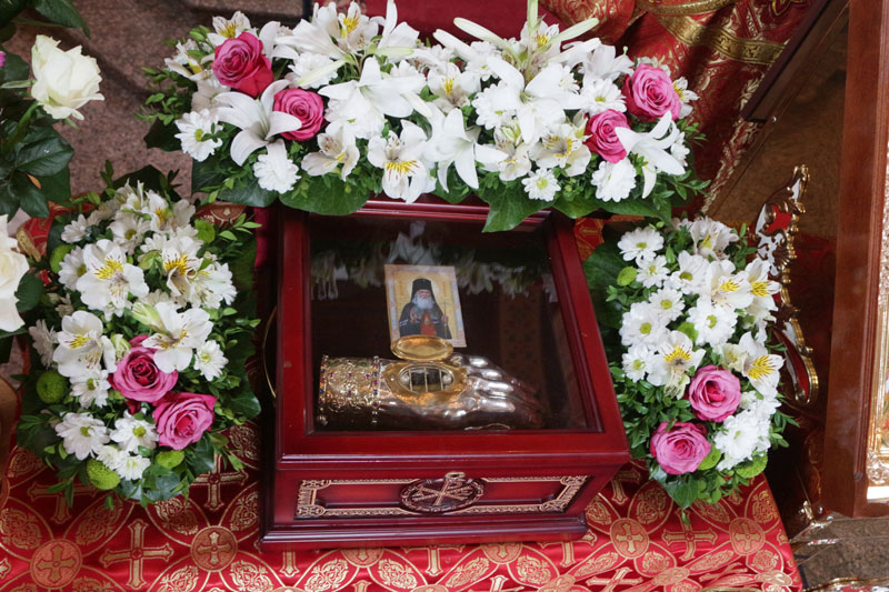 Перед началом вечернего богослужения в соборный храм был торжественно доставлен ковчег с частицей мощей святителя Луки (Войно-Ясенецкого), архиепископа Симферопольского и Крымского.
