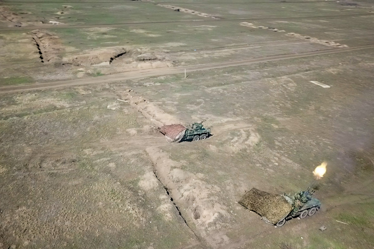 В финальной части учений расчеты зенитчиков, минометчиков и экипажи танков поразили бронетехнику условного противника. Мотострелковые подразделения вели непрерывный огонь из стрелкового оружия. Экипажи бронетранспортеров уничтожили легкобронированную технику и пехоту условного противника.