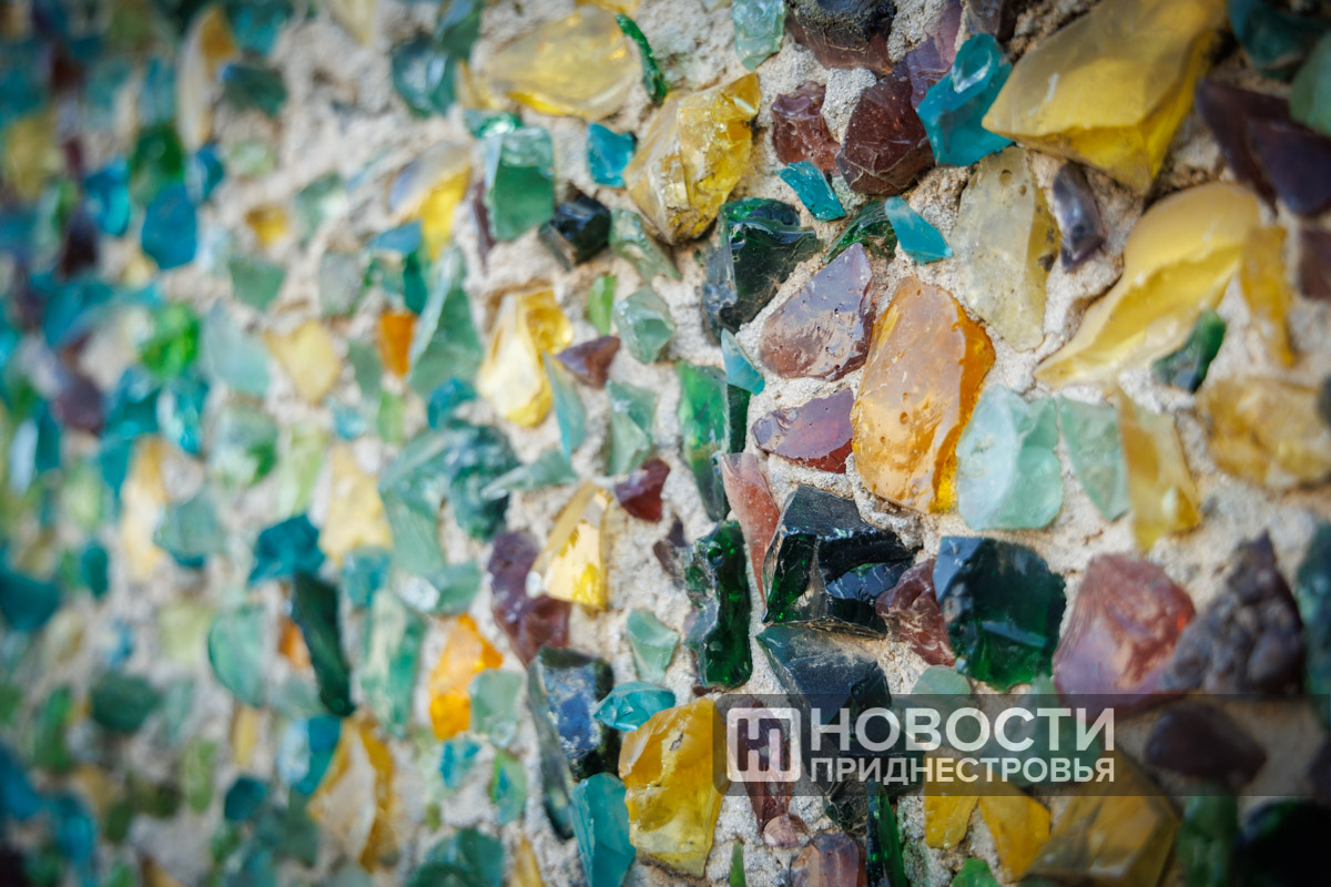 «Как мне рассказывал Виктор Иванович Радованов (он набирал её с Михаилом Руденко и с Аурелом Давидом), эти стёкла брали из стеклоплавильных печей. Когда идёт процесс изготовления стекла, оно оседает на стенах печей достаточно толстым слоем. В процессе остывания печи его выбивают механическим способом. Такое стекло фактически нигде не используется. Это достаточно редкий материал, чтобы набрать его в большом количестве и разных цветов. Его тогда было трудно найти, а сегодня и подавно», – добавил Сергей Горбаченко.