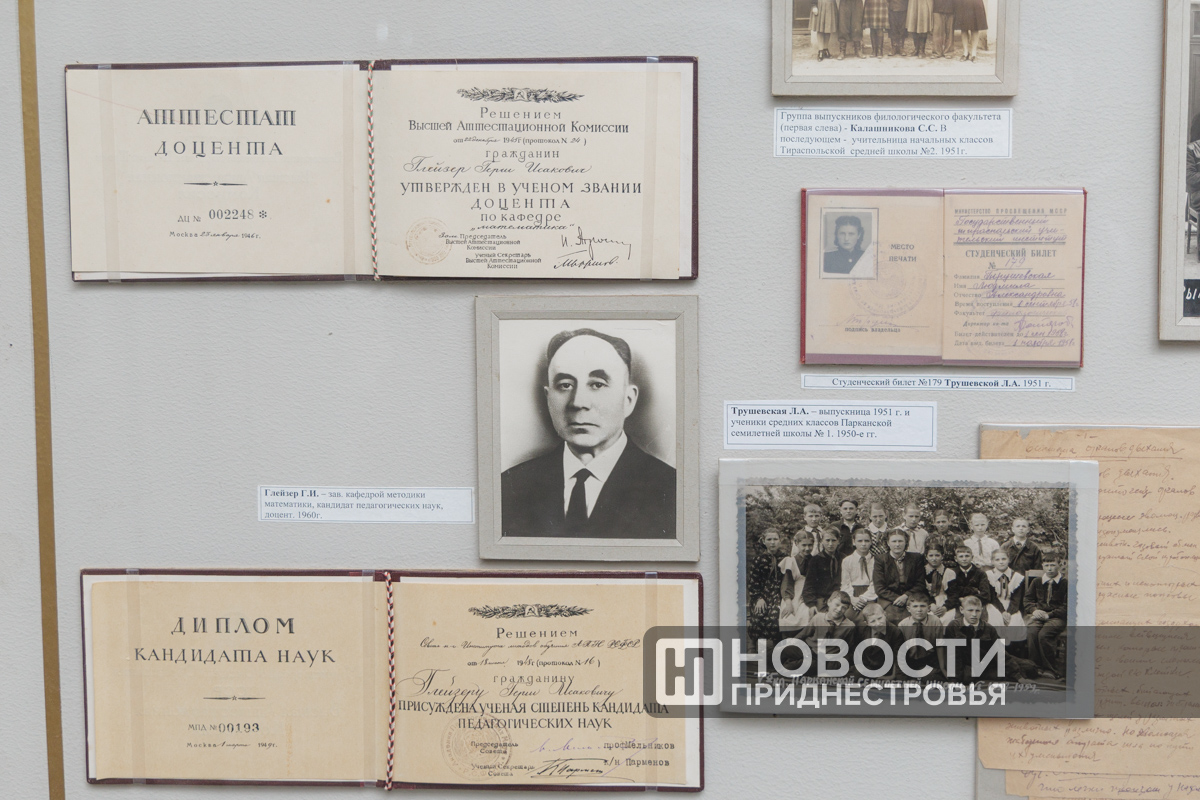 Тирасполь, 31 октября. /Новости Приднестровья/. История Приднестровского государственного университета им. Т. Г. Шевченко начинается в 1930 году, когда в Тирасполе был открыт институт народного образования. За 95 лет вуз изменился: сменились названия, появились новые факультеты и специальности. Сохранить всю эту историю помогает музей, который сегодня переехал из здания Культурно-просветительского центра им. Кирилла и Мефодия в обновлённый корпус «В».