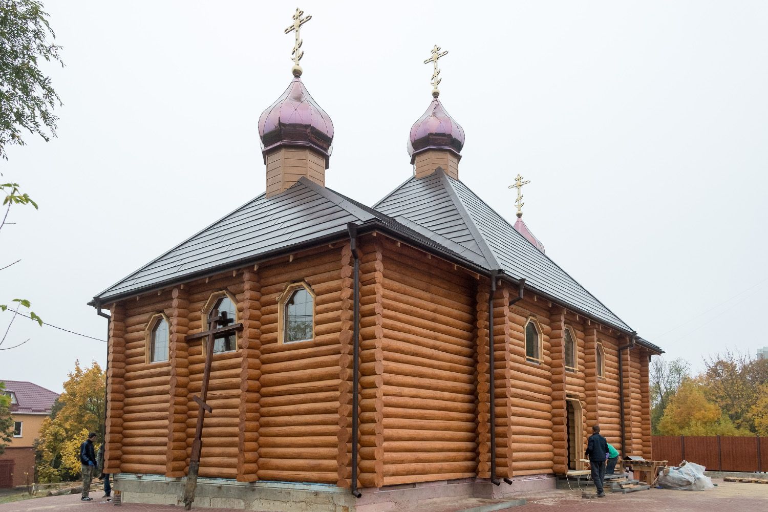 Строительные и отделочные работы по возведению трехкупольного деревянного храма близятся к завершению. Как сообщили подрядчики, все работы будут окончены в срок. Уже подведено отопление, проводится электричество, готовятся подсобные помещения, место для алтаря и для певчих. Благоустраивается прилегающая территория и подъездные пути.