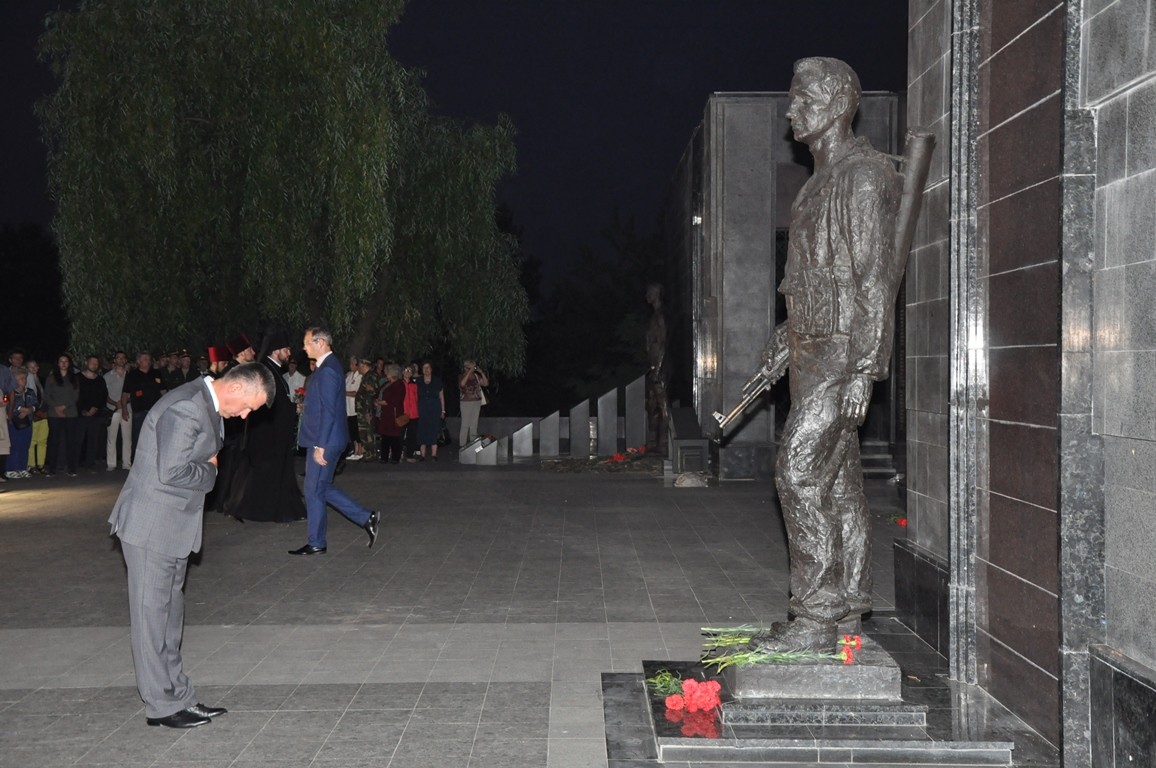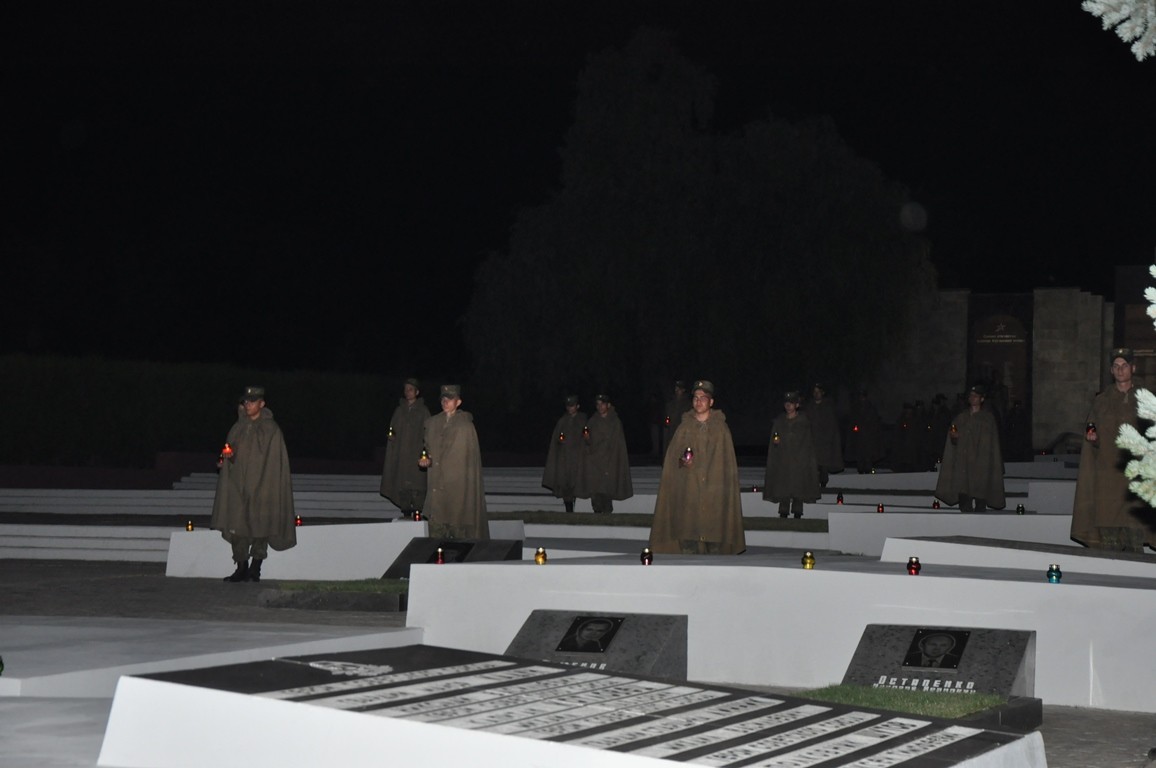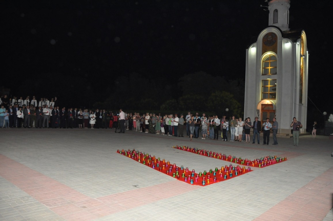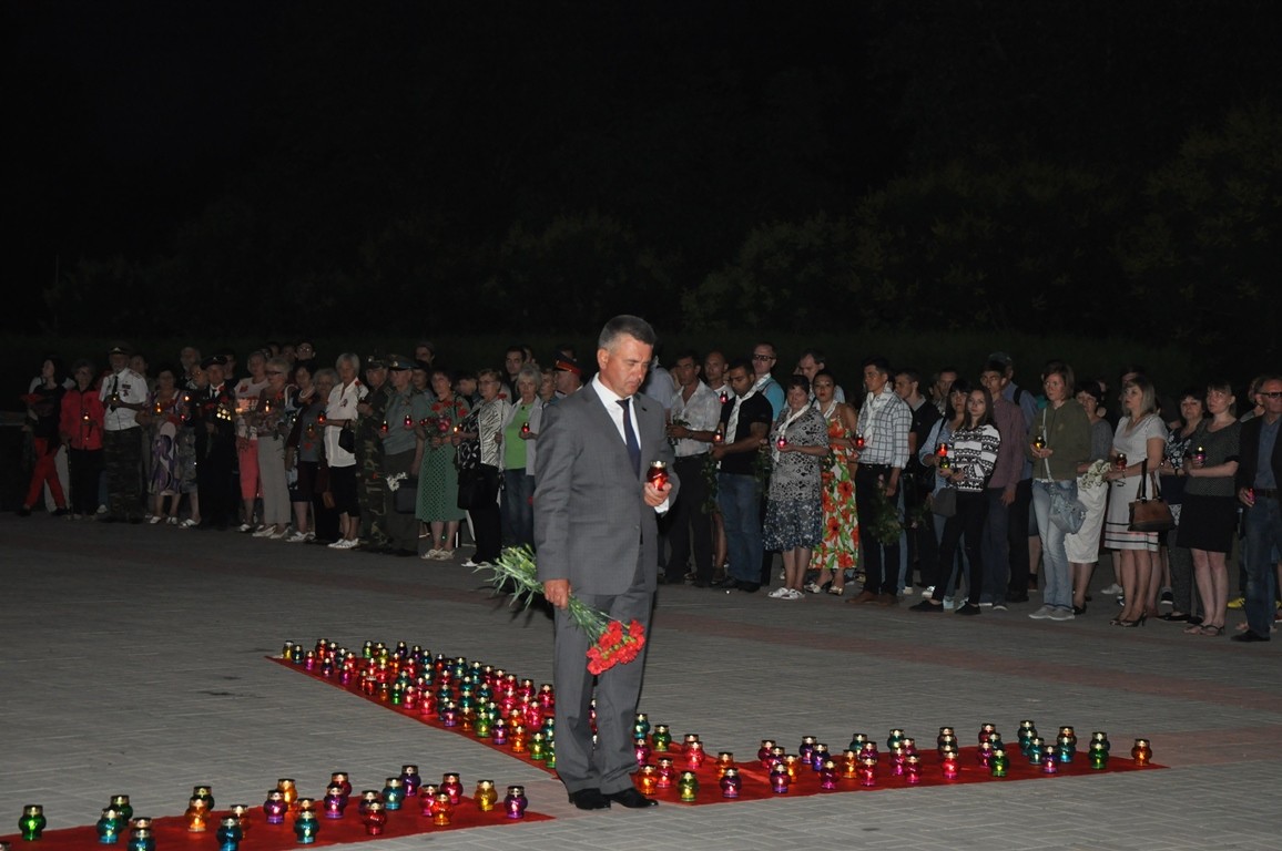 Участники акции несли к плитам мемориала живые цветы и лампадки. Почтил память жертв самой кровопролитной войны в истории человечества и президент Вадим Красносельский.