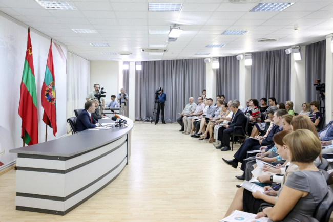 31 Авг., 2016, 14:03Тирасполь, 31 августа. /ИА «Новости Приднестровья»/. В преддверии 26-й годовщины образования ПМР Президент Евгений Шевчук провёл большую пресс-конференцию. Нынешний диалог Главы государства с представителями СМИ продлился рекордные 3 часа. Евгений Шевчук подводил своеобразный итог 5 лет президентства. На пресс-конференции прозвучали ответы на самые злободневные вопросы, интересующие гражданское общество. Поднимались темы валютного кризиса, внутренней и внешней политики государства. Самые яркие моменты вошли в наш обзор.