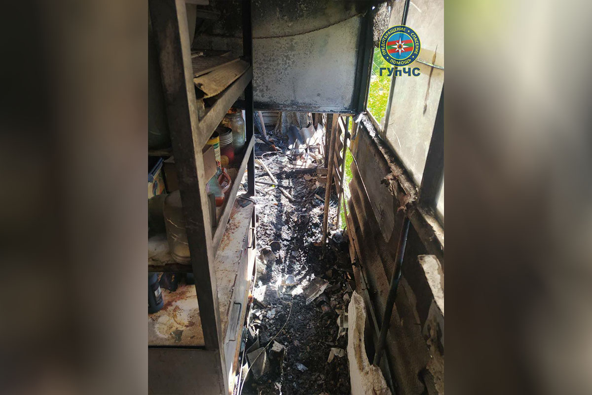 На балконе, с которого начался пожар, сгорел деревянный стеллаж, лопнула и обгорела обшивка из шифера. У соседей от высокой температуры лопнуло стекло, закоптились стены. Частично сгорел утеплитель внутри.