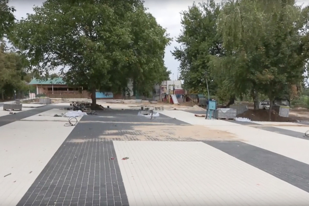 Бендеры, 29 августа. /Новости Приднестровья/. Набережная в Бендерах продолжает меняться. Весной там демонтировали старые аттракционы, на месте которых возведут детский развлекательный комплекс. Территорию расчистили, рабочие говорят, что на площадке площадью примерно в 2 тыс. м2 будут как бетонные, так и резиновые покрытия. Сейчас укладывают плитку.