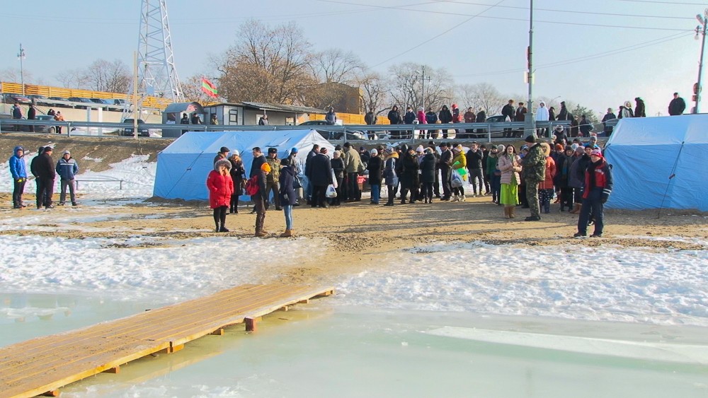 На берегу Днестра в Дубоссарах сотни горожан совершают обряд крещенского купания