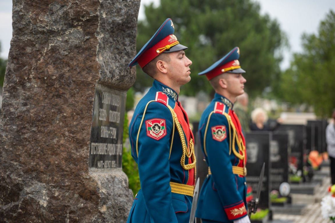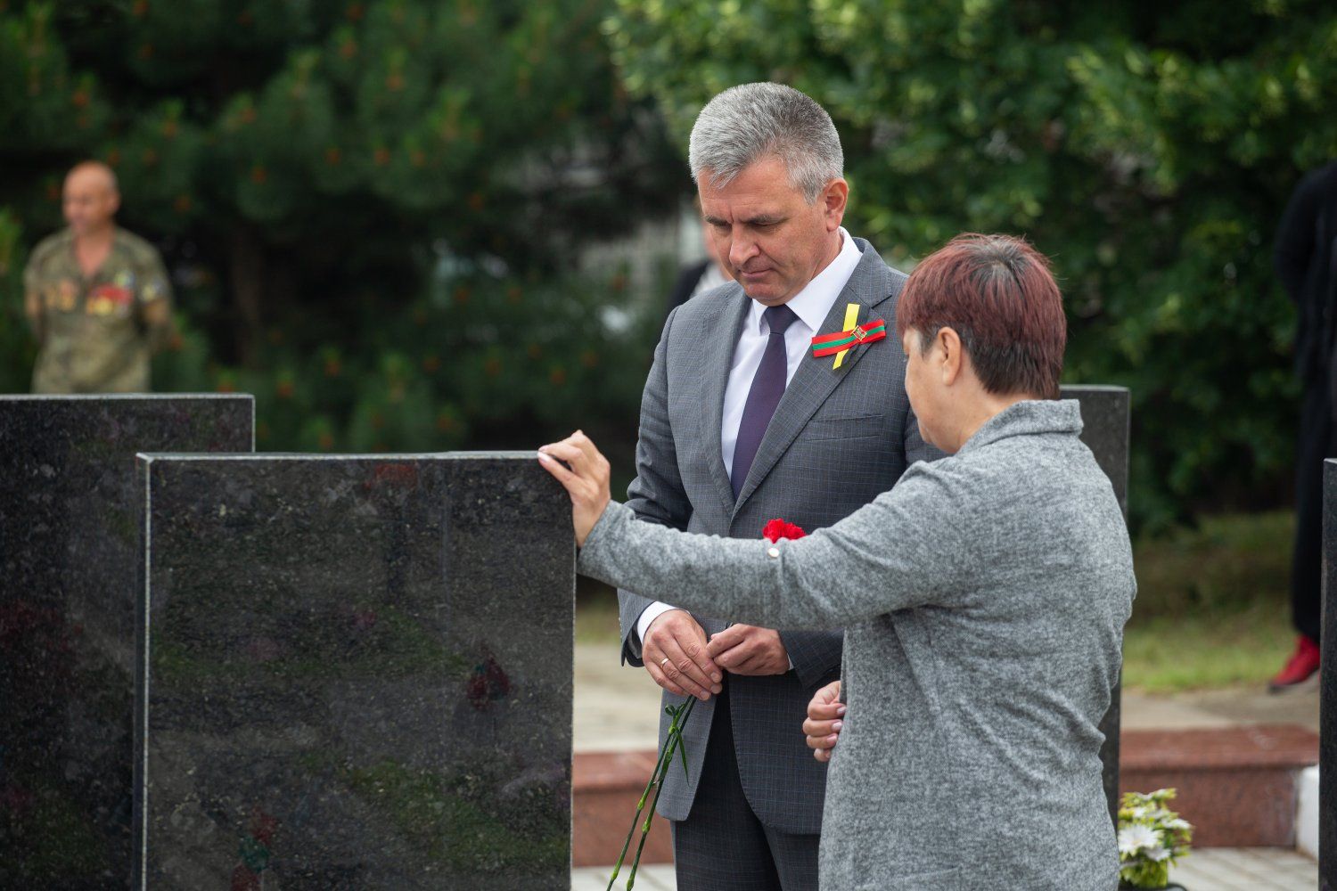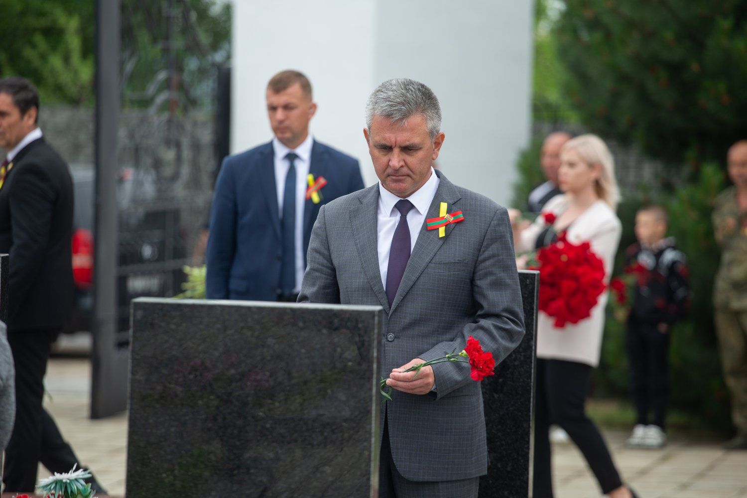 Президент ПМР Вадим Красноселький возложил цветы к памятнику Защитникам ПМР, установленному на Аллее Героев, и к каменным плитам могил захороненных здесь защитников республики. Их имена звучали сегодня, эхом отзываясь в сердцах благодарных соотечественников.