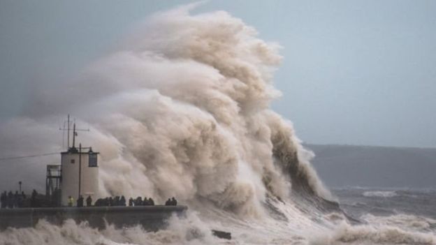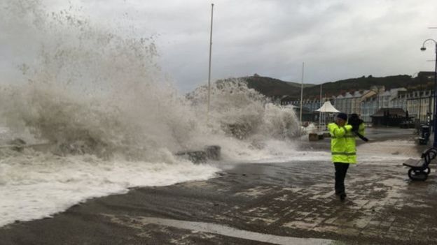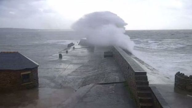 В Корнуолле были установлены барьеры от наводнения, чтобы защитить прибрежные города. В Уэльсе поезда и паромы отменены, закрыты дороги у моря.