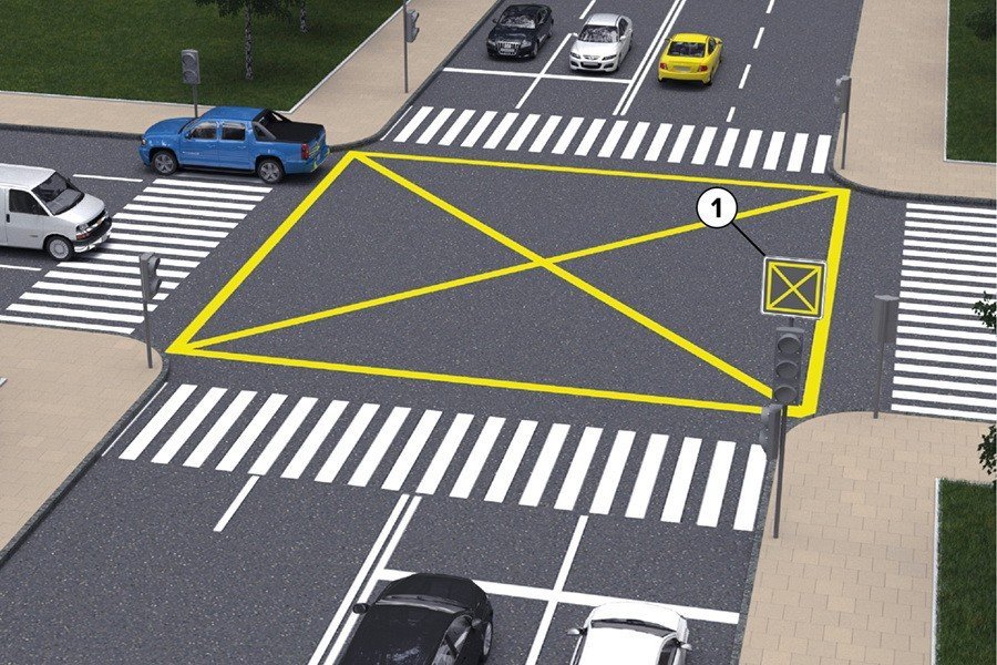 Желтая «вафля» недавно была официально добавлена в Правила дорожного движения (ПДД) и применяется для запрета въезда на перекресток в случае затора. Теперь она дополнена знаком. Остановка в его зоне действия карается штрафом в одну тысячу рублей РФ.