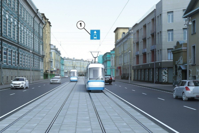 Предварительный стандарт допускает установку знаков «Выделенная трамвайная полоса» с изображением трамвая, а также знаков для движения общественного транспорта, которые созданы в первую очередь для водителей: так им будет проще понять, куда поедет автобус. По предложению Департамента транспорта введен знак остановки, совмещенный с указателем маршрутов.