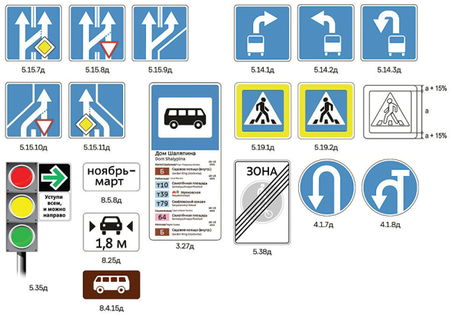 Появились «Велопешеходная зона» и «Конец велопешеходной зоны», «Туристические автобусы», таблички для указания периода действия знаков парковки, максимальной ширины парковочного места и обозначения зон, где могут появиться глухие пешеходы — например, рядом с больницами и поликлиниками.