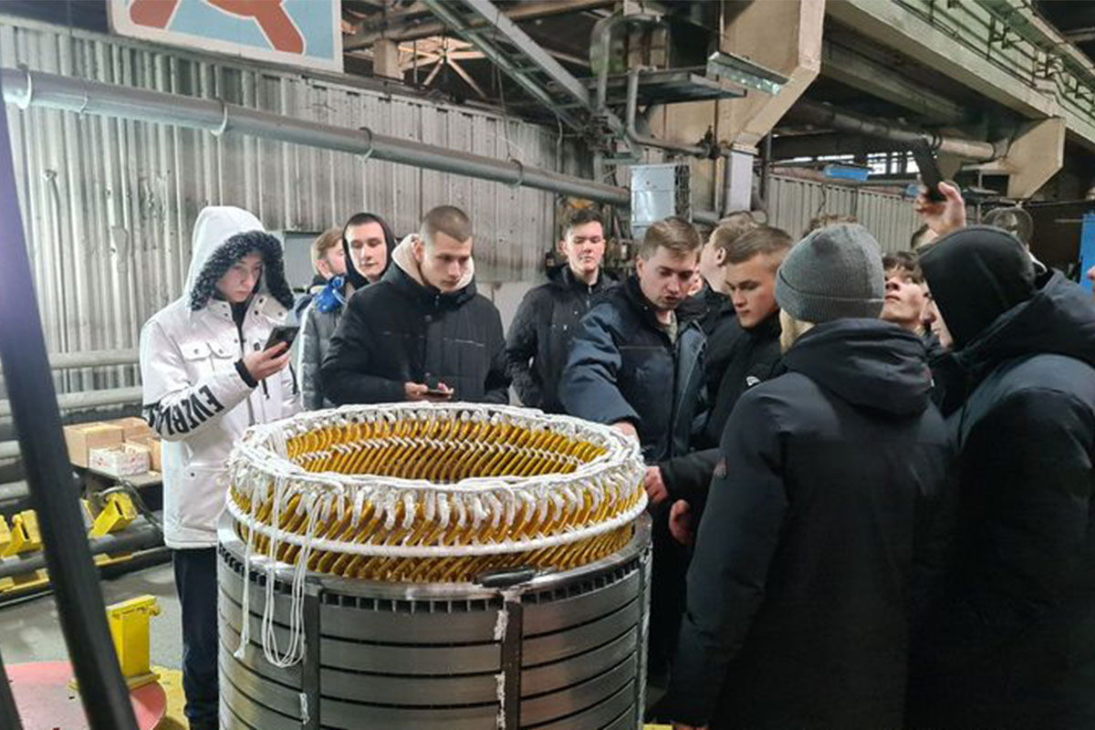 Как сообщил официальный сайт предприятия, на проходной студентов встретил заместитель начальника бюро технологической подготовки производства Евгений Подсекин. Он провел гостей по цехам основного производства, рассказал о технологическом процессе изготовления больших электрических машин и показал, как они собираются.