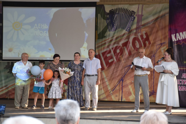 Каменка, 9 июля. /Новости Приднестровья/. В Каменке в рамках фестиваля «Камертон» отпраздновали День семьи, любви и верности. В городском парке развернулась широкая концертная программа, работали выставки народных мастеров, для детей устроили развлечения, а самые удачливые гости получили призы от партнёров мероприятия, сообщает местная госадминистрация.